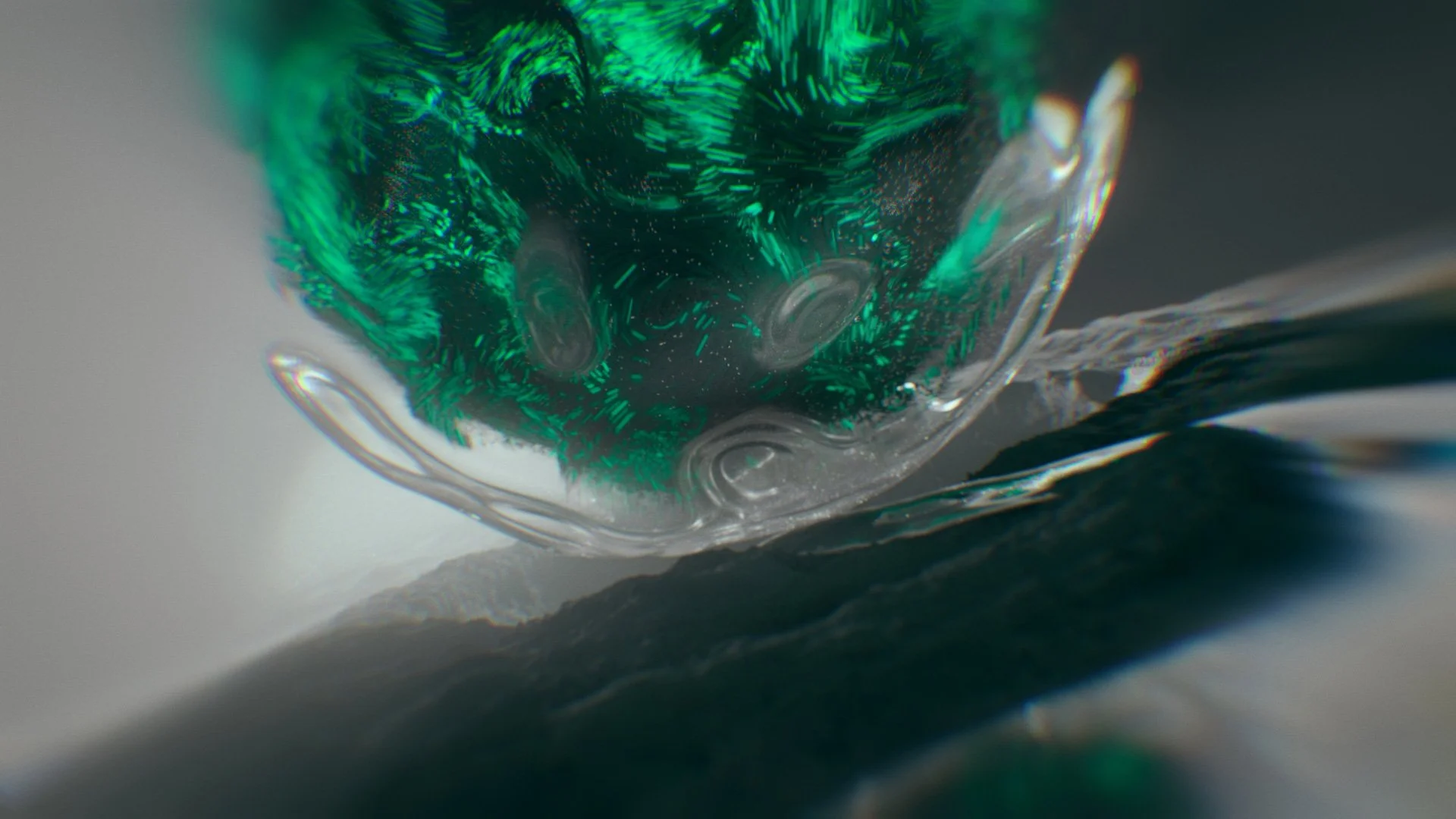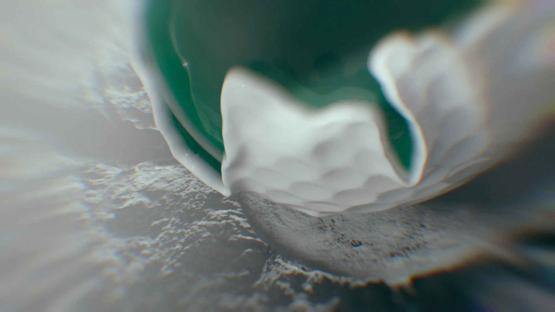 Molten polymers cascade in a stylized dance, rendered with cinematic precision to highlight the innovative core of Titleist’s performance-driven design.